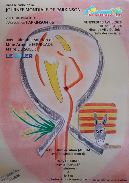 Dans le cadre de la Journée Mondiale de la Maladie de Parkinson 2026, ” Alain JAURIAC , les membres “artistes amateurs” de l’association Parkinson 66 avec le soutien de Mme Le Maire de la ville du Soler Armelle FOURCADE, exposeront leurs créations.